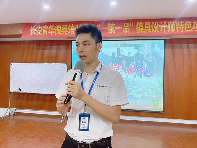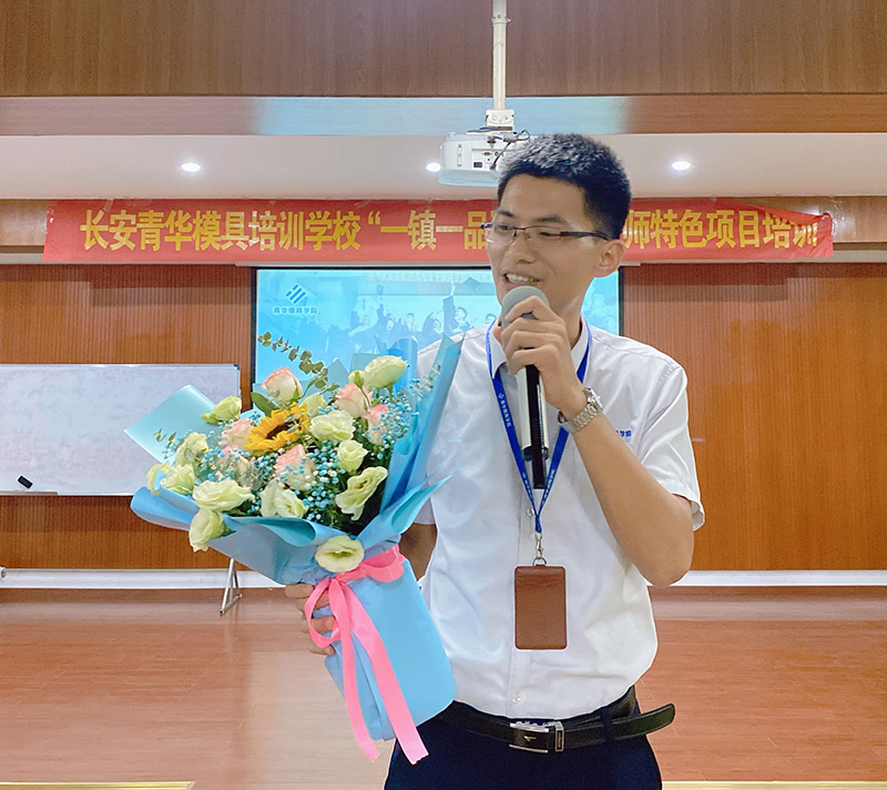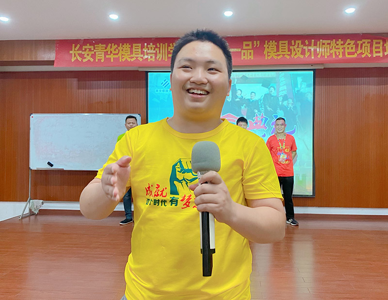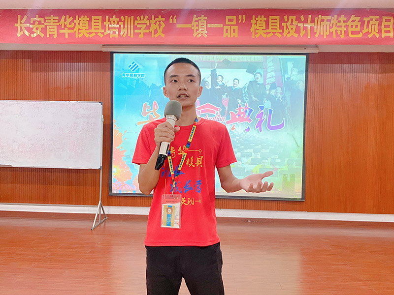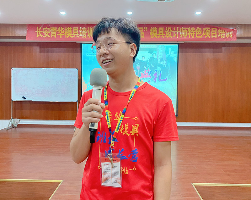 学生分享在青华模具培训学校学习的收获,以及对老师们的耐心教导致以感恩。